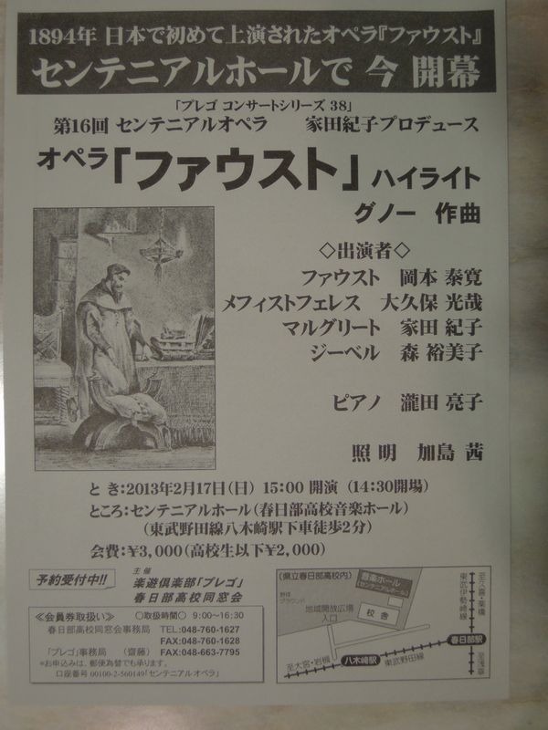 Дабы не утомлять публику и, возможно, в силу уровня подготовки исполнителей, «Фауста» ставили не полностью. Опера Гуно состоит из пяти актов и с учётом пролога, эпилога и балетных сцен, продолжается чуть меньше трёх часов. При всей любви к Гёте даже подготовленные японцы могли не выдержать столь длительного представления, да и сотрудники австрийского посольства не были профессиональными исполнителями и ограничились постановкой первого акта. Хотя первое официальное знакомство слушателей с оперой на японской земле было признано удачным, до появления собственных исполнителей и постановщиков, которые осмелились бы взяться за этот жанр, оставалось ждать ещё девять лет. Первой оперной постановкой, осуществлённой самими японцами, стало исполнение «Орфея» Глюка в 1903 году на всё той же сцене концертного зала Токийского музыкального училища, и простые слушатели туда попасть не могли – вход осуществлялся исключительно по приглашениям.