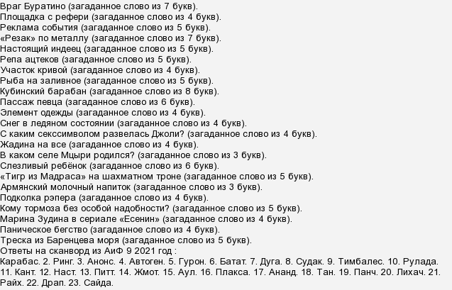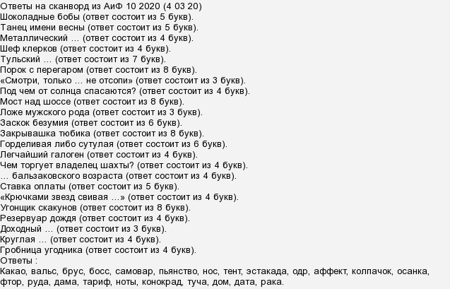 Аиф 24 сканворд ответы 146 фото