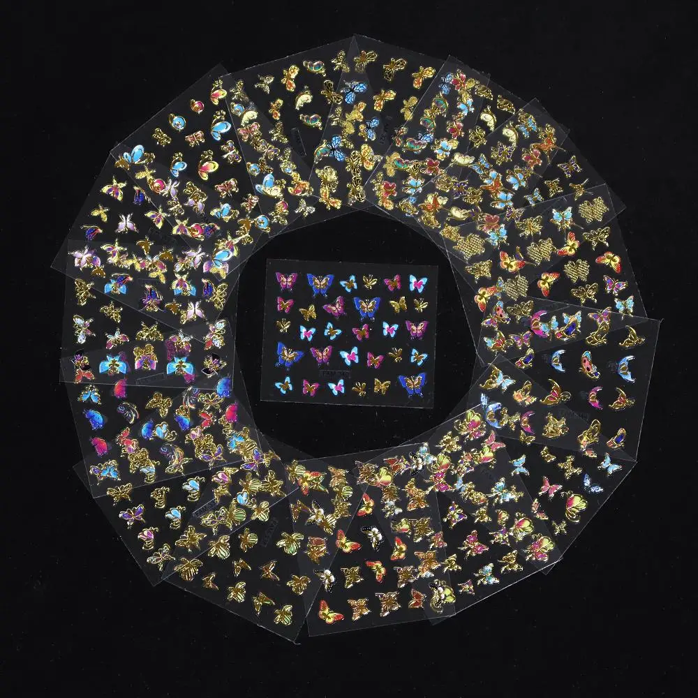 "24/30 Sheet Nail Art Sticker Transparent Bottom Gold/Silver Blue Flower Butterfly Geometric Line Sliders 3D Nail Sticker Decor+" * Buy Now Just For 2$