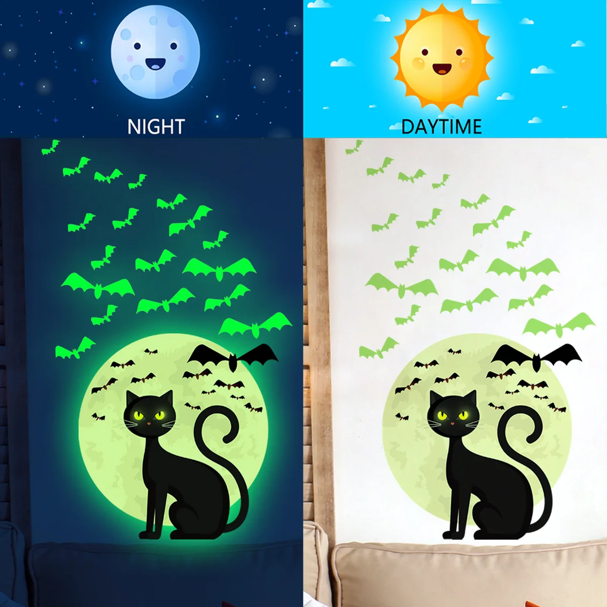 "24*30cm Wall Sticker Luminous Bat Cat Halloween Wall Sticker Luminous Sticker Living Room Decoration Wall Sticker Self Adhesive" * Buy Now With Free Shipping Just For $3