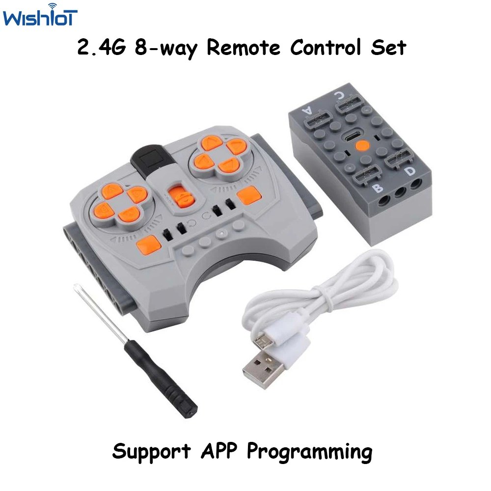 OAXJjBLNHere you can buy 2.4G 8 Way Remote Control Speed Adjustable APP Program Rechargeable for MOC Power Functions Car Train Motor Control Tech Parts with free delivery to your post office.