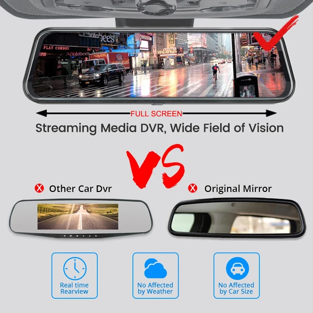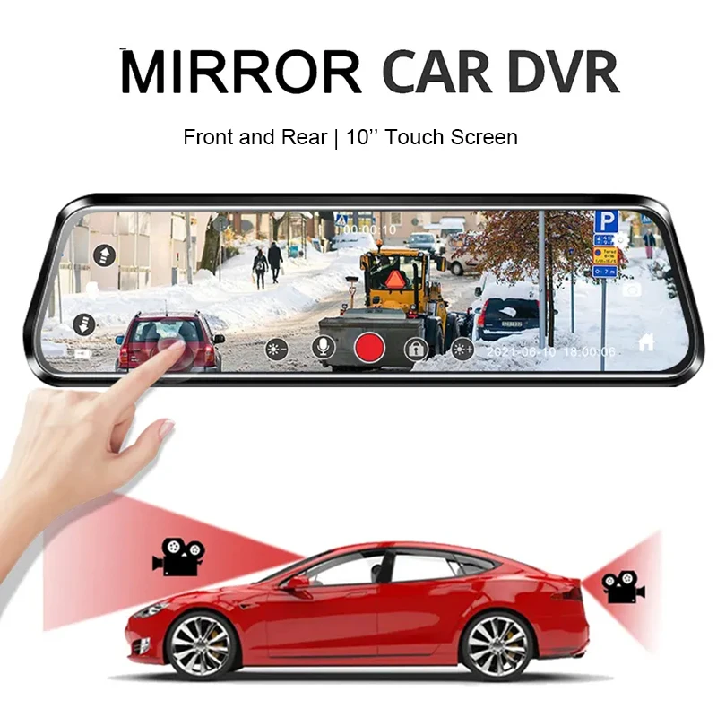 24H Surveillance Dash Cam 10'' Car DVR Front and Rear Drive Video Recorder Registrator Auto Rearview Dual Dashcam Black Box - Купить с бесплатной доставкой