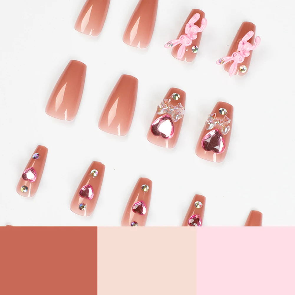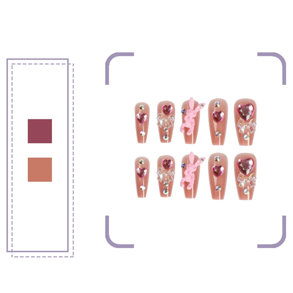 24PCS Long Press On Nails 3D Rabbits & Heart Sweet Style Full Coverage Nails - Купить с бесплатной доставкой