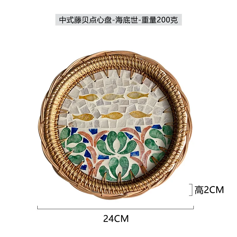lwtsYKayHere you can buy 24cm Rattan Shell Fruit Plate Round Creative Color Storage Tray Home Bread Fruit Salad Snack Plate Kitchen Living Room Decor with free delivery to your post office.