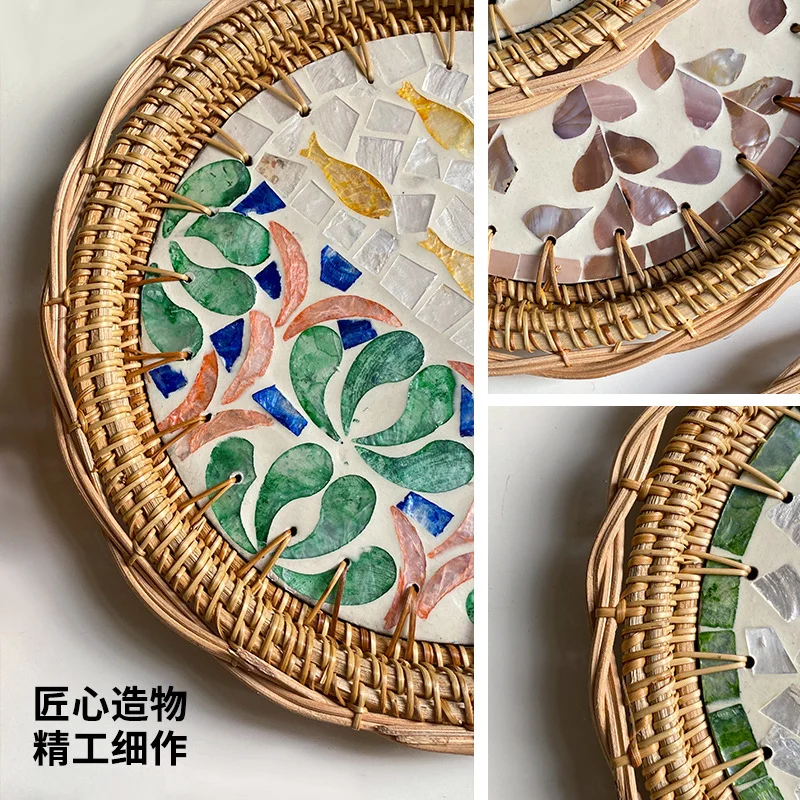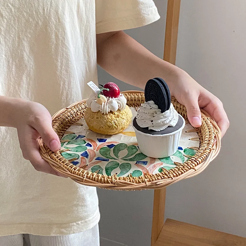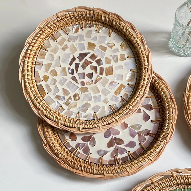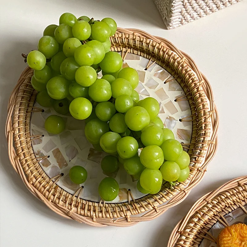 "24cm Rattan Shell Fruit Plate Round Creative Color Storage Tray Home Bread Fruit Salad Snack Plate Kitchen Living Room Decor" * Buy Now With Free Shipping Just For $24