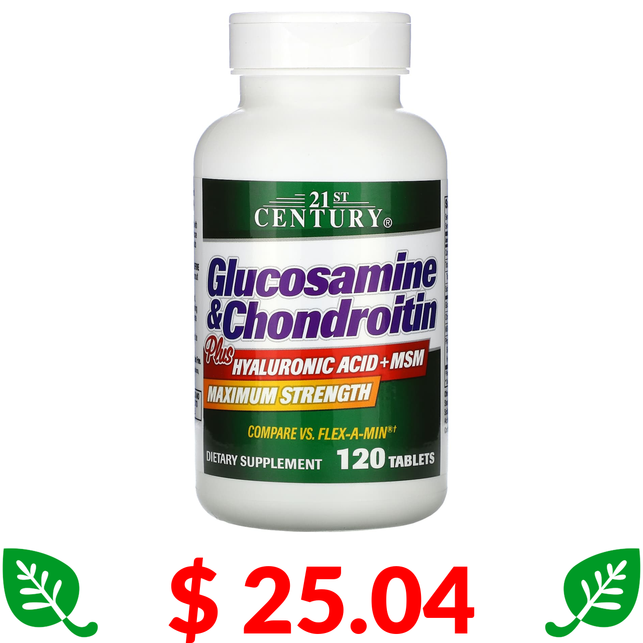 $ 25.04 21st Century, Glucosamine & Chondroitin Plus Hyaluronic Acid + MSM, 120 Tablets