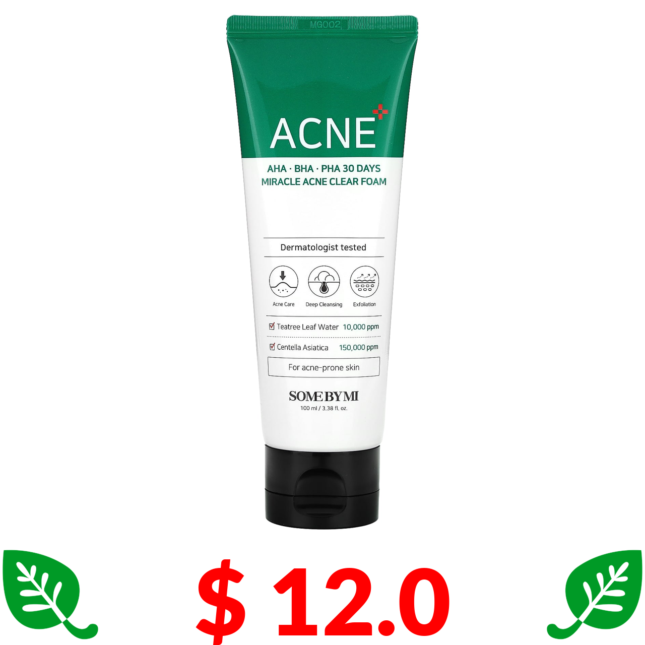 $ 12.0 SOME BY MI, AHA, BHA, PHA 30 Days Miracle Acne Clear Foam, 3.38 fl oz (100 ml)