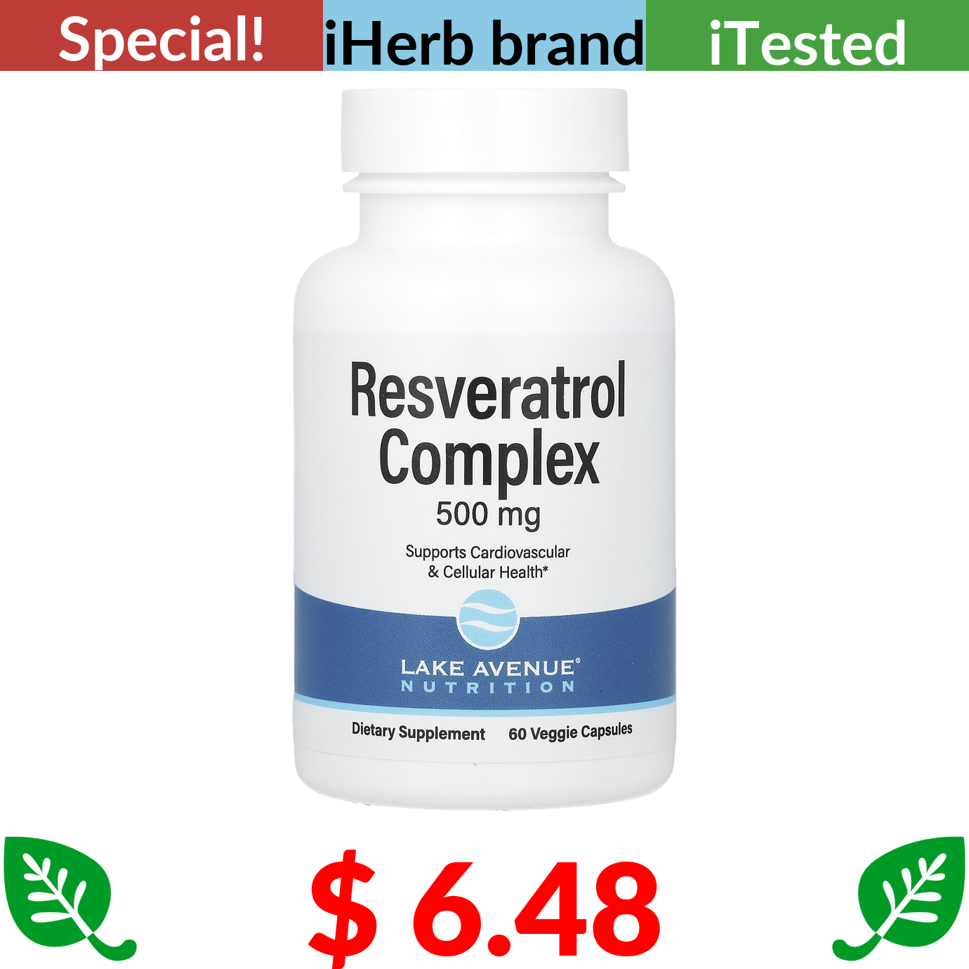 $ 6.48 Lake Avenue Nutrition, Resveratrol Complex, 500 mg, 60 Veggie Capsules