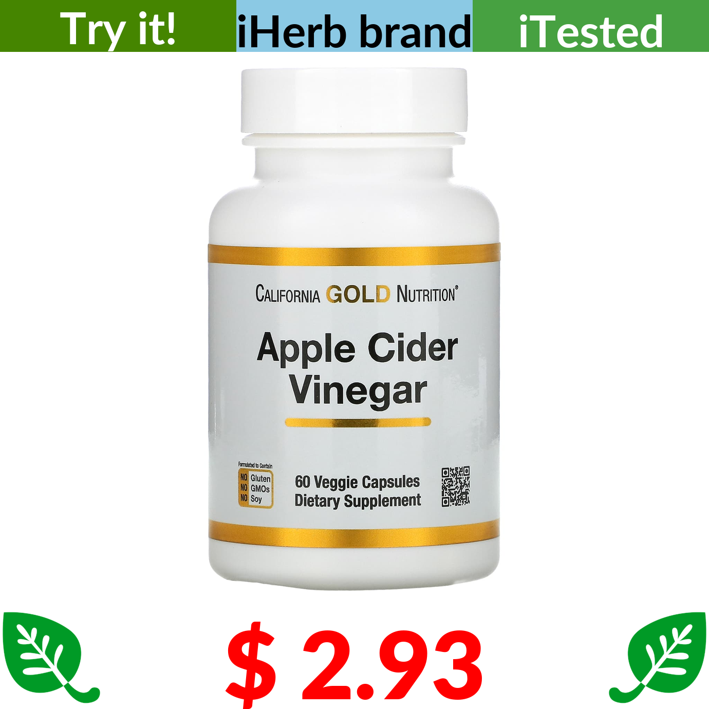 $ 2.93 California Gold Nutrition, Apple Cider Vinegar, 60 Veggie Capsules