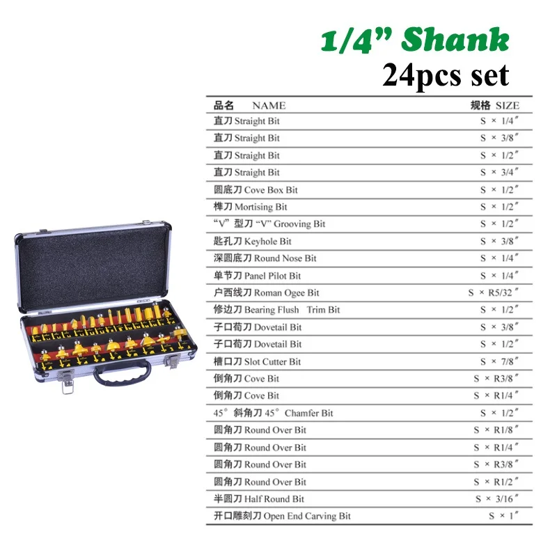 XoDAlYkSdHere you can buy 24pcs 1/4" Shank 6.35mm Straight Router Bit Set Tungsten Carbide Wood Cutter Trimming Knife Forming Milling Box Case DIY with free delivery to your post office.
