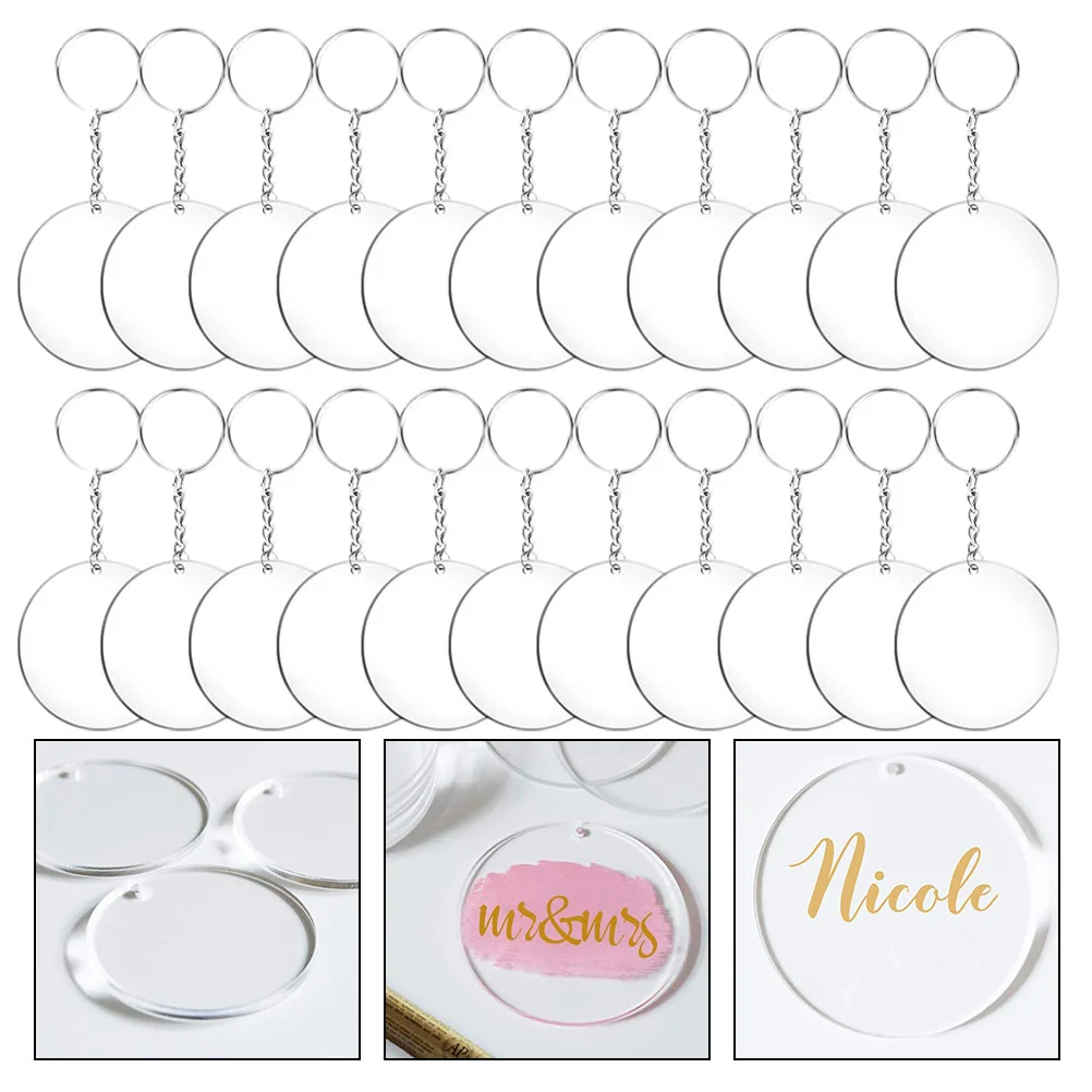 24pcs Acrylic Transparent Circle Discs Set Key Chains Clear Round Acrylic Keychain Blanks Keychain for DIY (Transparent) - Купить с бесплатной доставкой