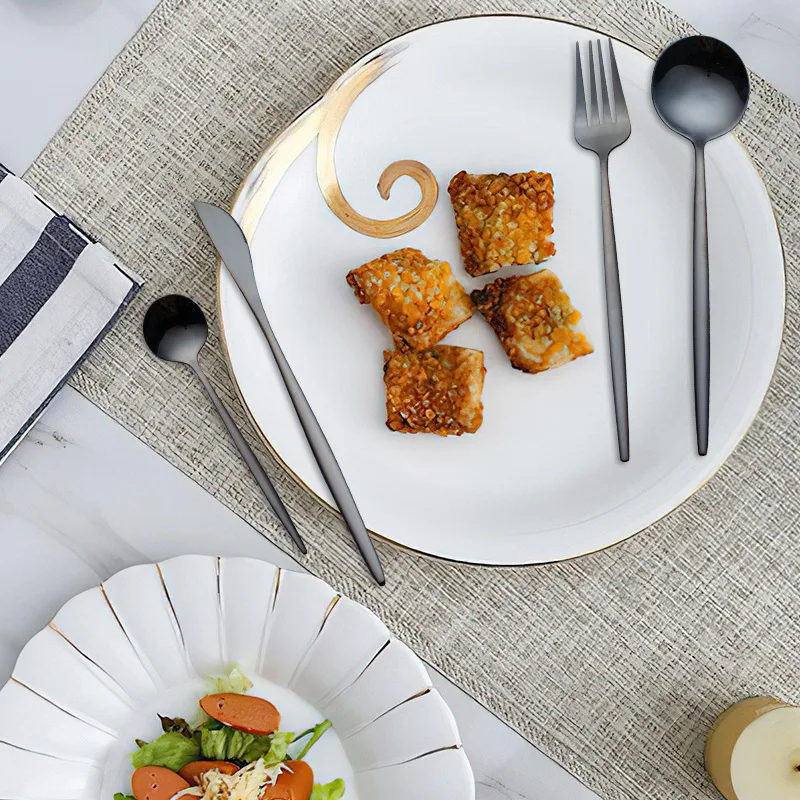 24pcs Black Western Dinnerware Set Stainless Steel Cutlery Set Fork Knife Spoon Tableware Set Flatware Set Silverware Set - Купить с бесплатной доставкой