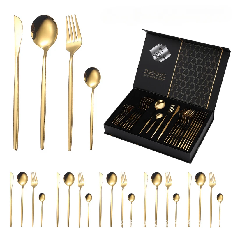 RbdBOVqdLHere you can buy 24pcs Gold Dinnerware Set Stainless Steel Tableware Knife Fork Spoon Luxury Cutlery Set Gift Box Flatware Utensils For Kitchen with free delivery to your post office.