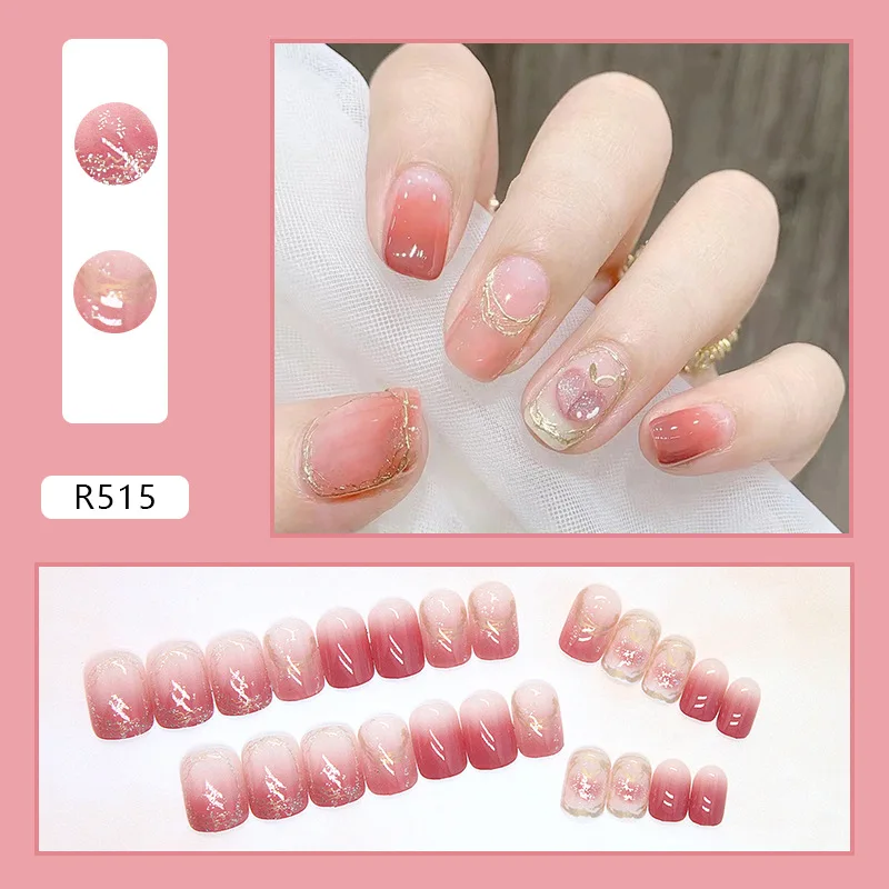 "24pcs/Box Detachable Coffin False Nails Wearable Short Square Shiny Jelly Peach Fake Nails Full Cover Nail Tips Press On Nails" * Buy Now Just For 2$