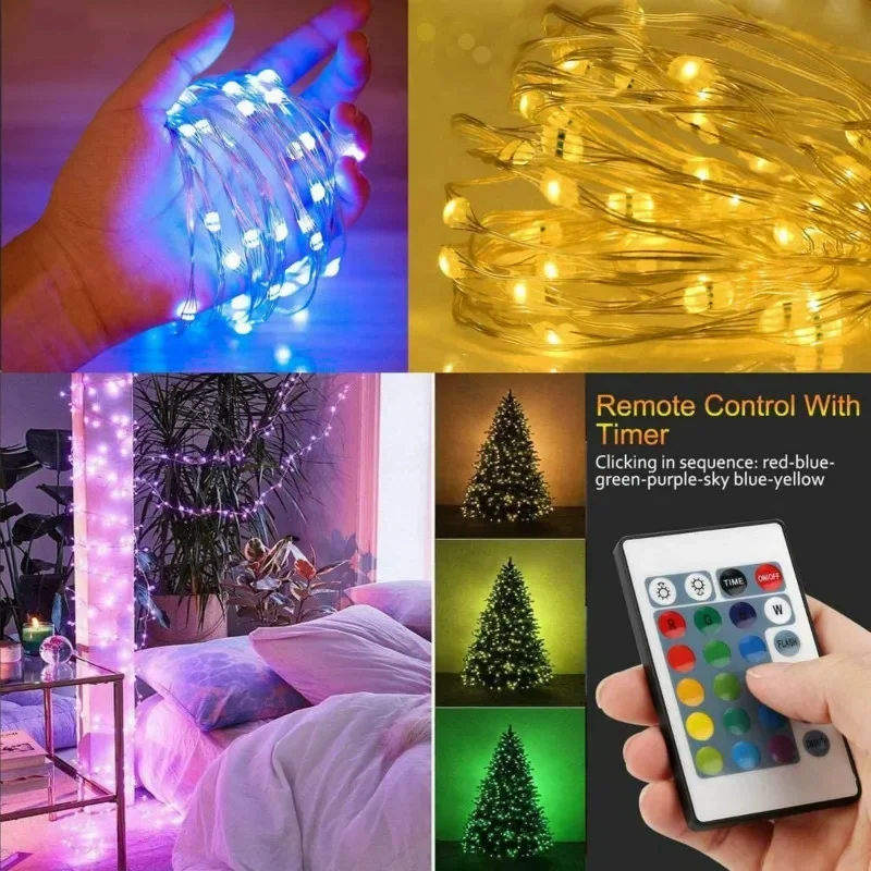 2/5/10m RGB LED Fairy Copper Wire String Light Remote Control Holiday Lamp for Outdoor Wedding Party Christmas Tree Decoration - Купить с бесплатной доставкой