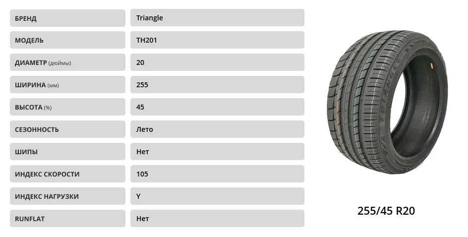 255 45 20 размеры