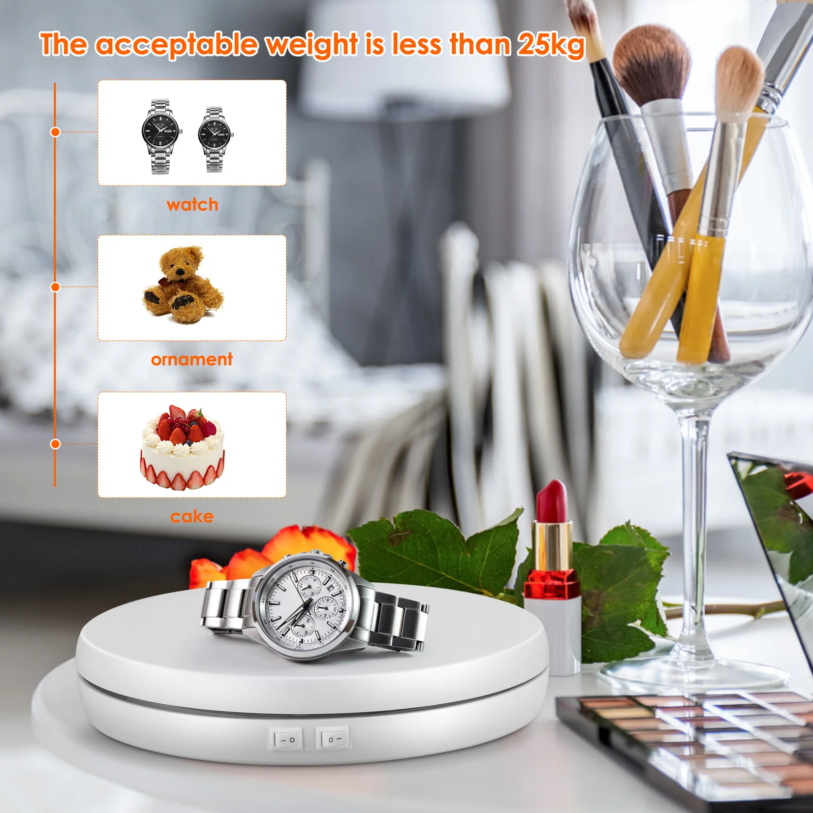 sZCIkhoryKHere you can buy 25cm LED Photo 360 Degree Electric Rotating Turntable with LED Light Rotating Display Stand for Photography Jewelry Watch with free delivery to your post office.