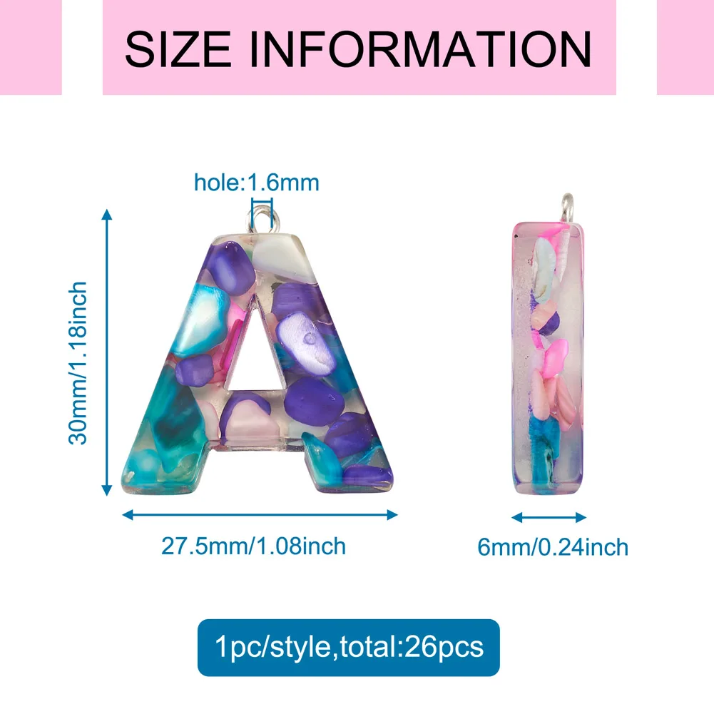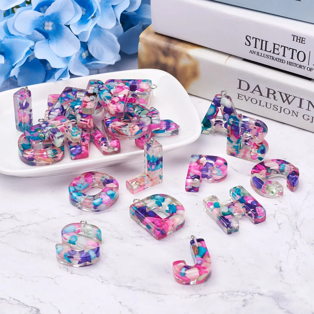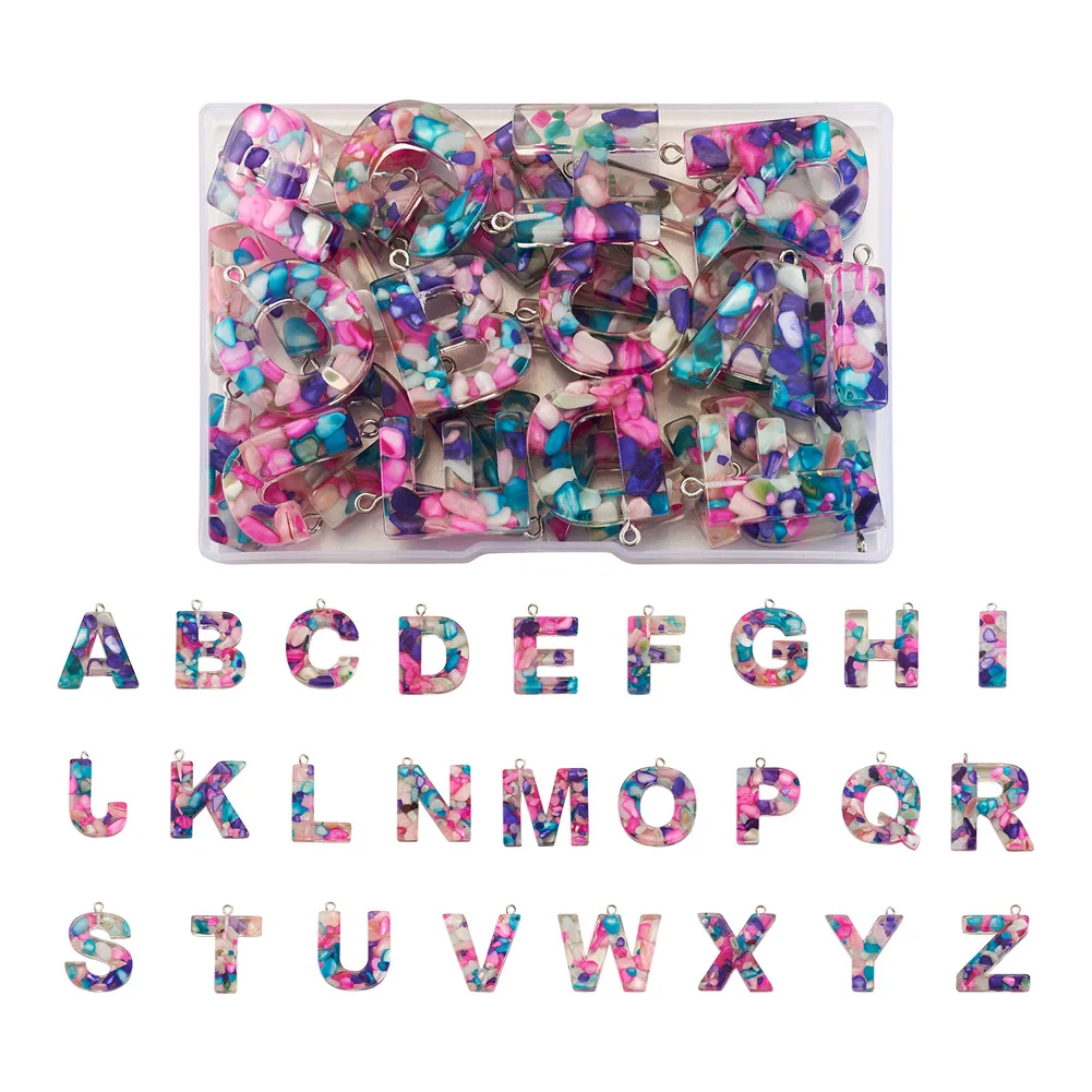 26Pcs/Set Colorful Transparent Epoxy Resin Letters Pendants Initials A~Z Charms For Keyring Bracelet Necklace DIY Jewelry Making - Купить с бесплатной доставкой