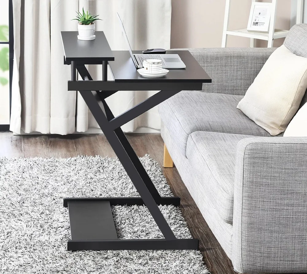 ARTLJrxshWHere you can buy 27-Inch Computer Desk for Small Spaces,Small Desk with Monitor Shelf & Bottom Storage Shelves, Unique Z-Shaped Compact Study with free delivery to your post office.