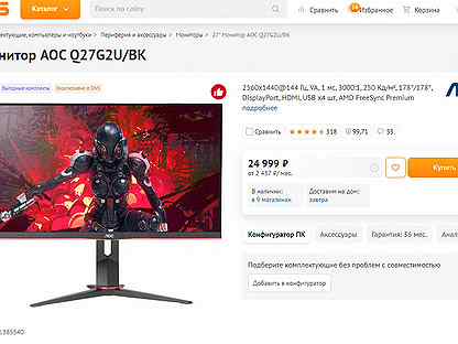 27 " Монитор AOC Q27G2U/BK . Быстрая доставка . Простой возврат до 60 дней . Быстрая доставка . Простой возврат до 60 дней . Ozon .ru С нами более 10-ти . . .