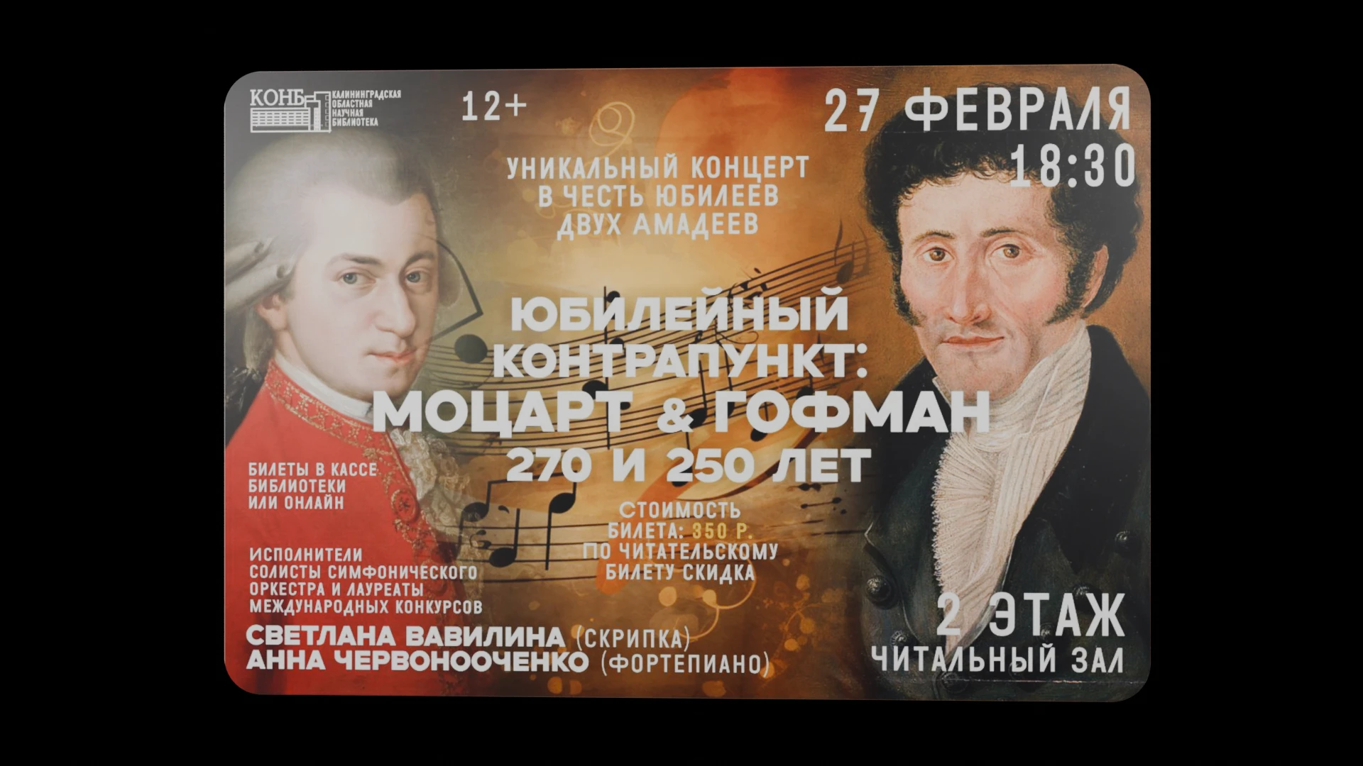 Концерт в честь юбилеев Моцарта и Гофмана с произведениями для скрипки и фортепиано.