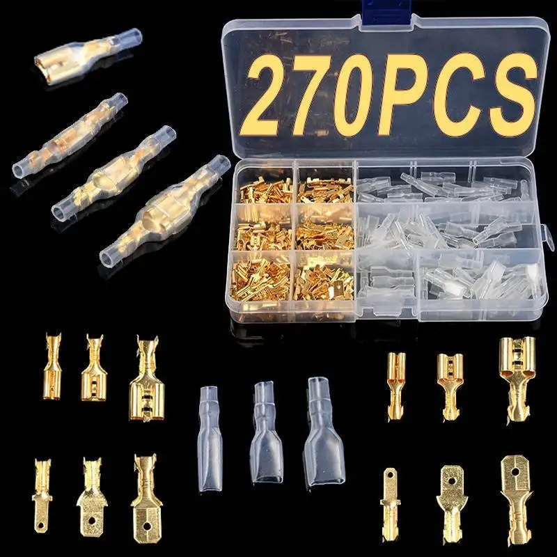 «270pcs Golden Copper Hook Switch Insert Sheath Cold Compression Wiring Terminal Male and Female Butt Terminal Set» по лучшей цене на рынке! Всего за 5$ (475рублей)