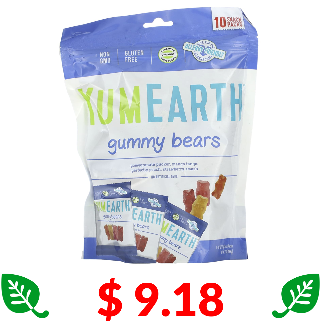 $ 9.18 YumEarth, жевательные мишки, ассорти, 10 порционных упаковок по 19,8 г (0,7 унции)