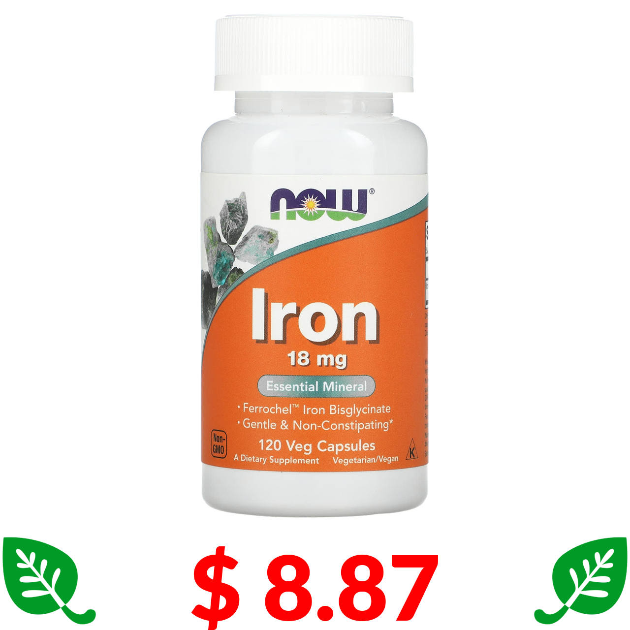 $ 8.87 Now Foods, Железо, 18 мг, 120 растительных капсул