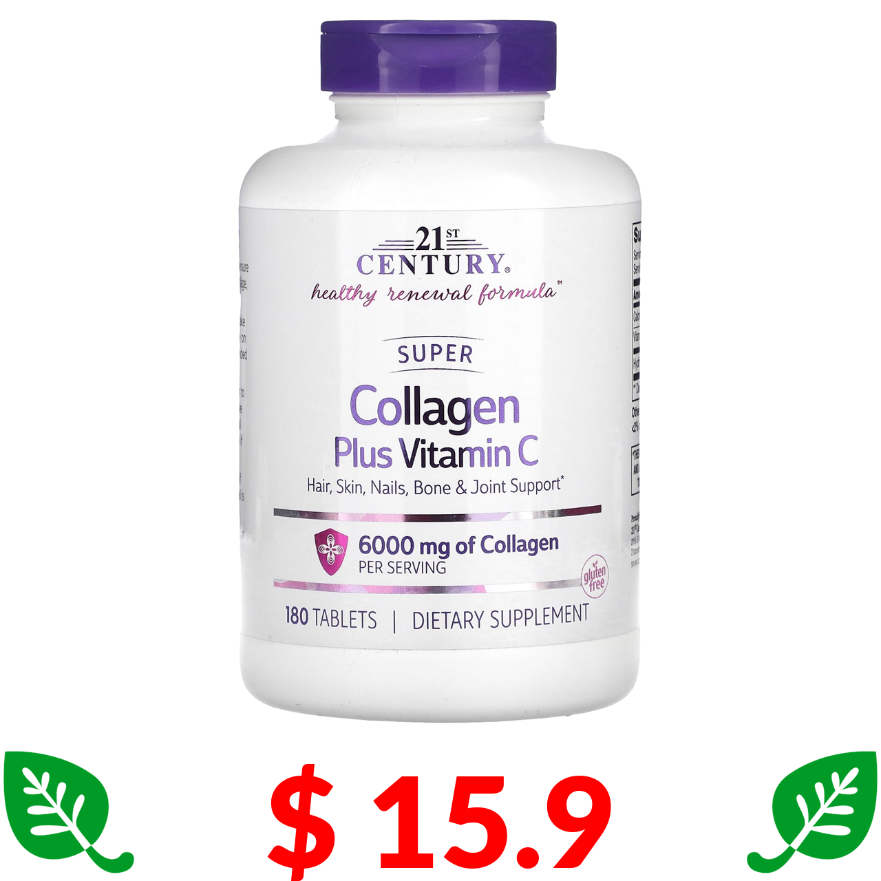 $ 15.9 21st Century, суперколлаген с витамином C, 6000 мг, 180 таблеток (1000 мг в 1 таблетке)