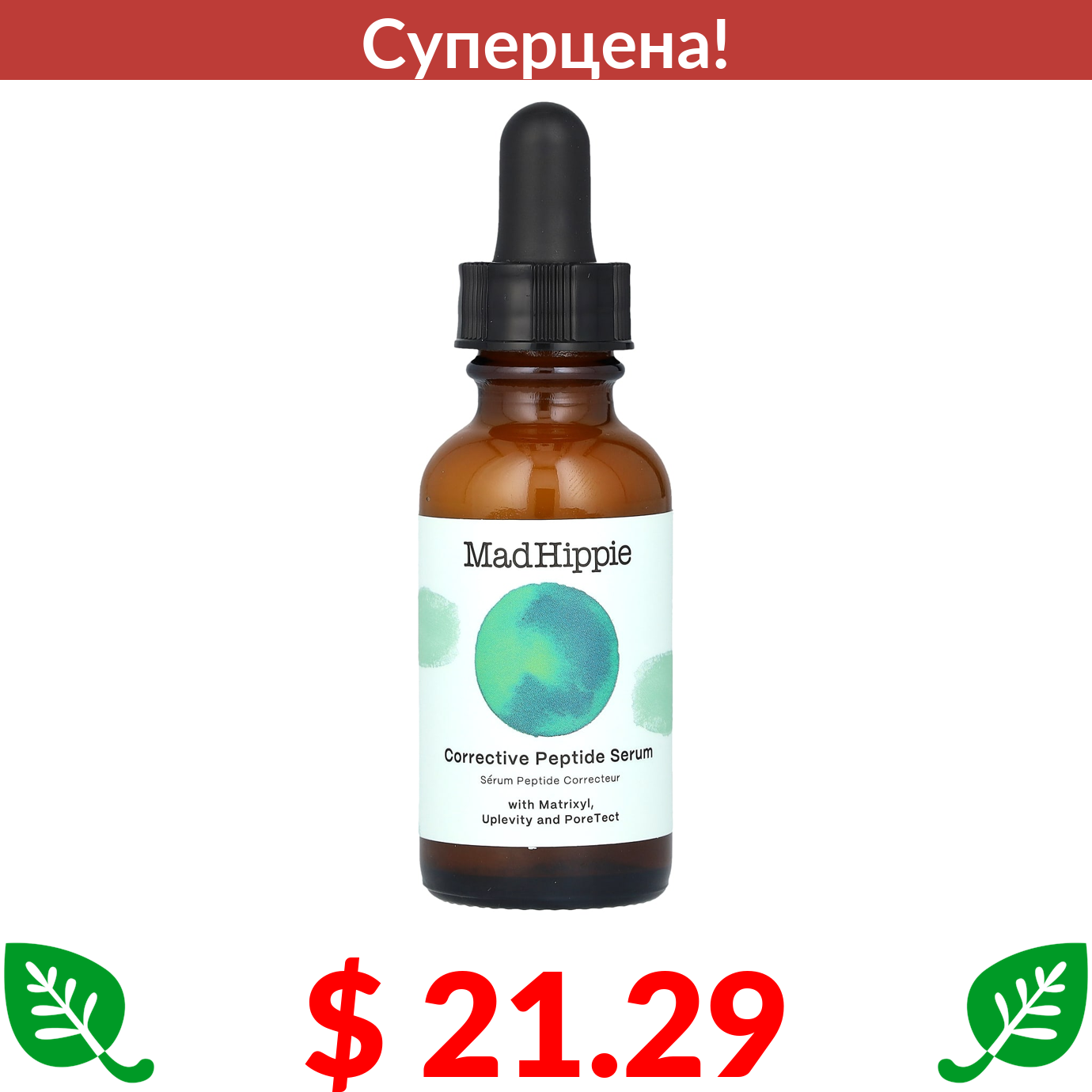 $ 21.29 Мэд Хиппи Скин Кэр Продактс, Корректирующая пептидная сыворотка, 30 мл (1,02 жидк. Унции)