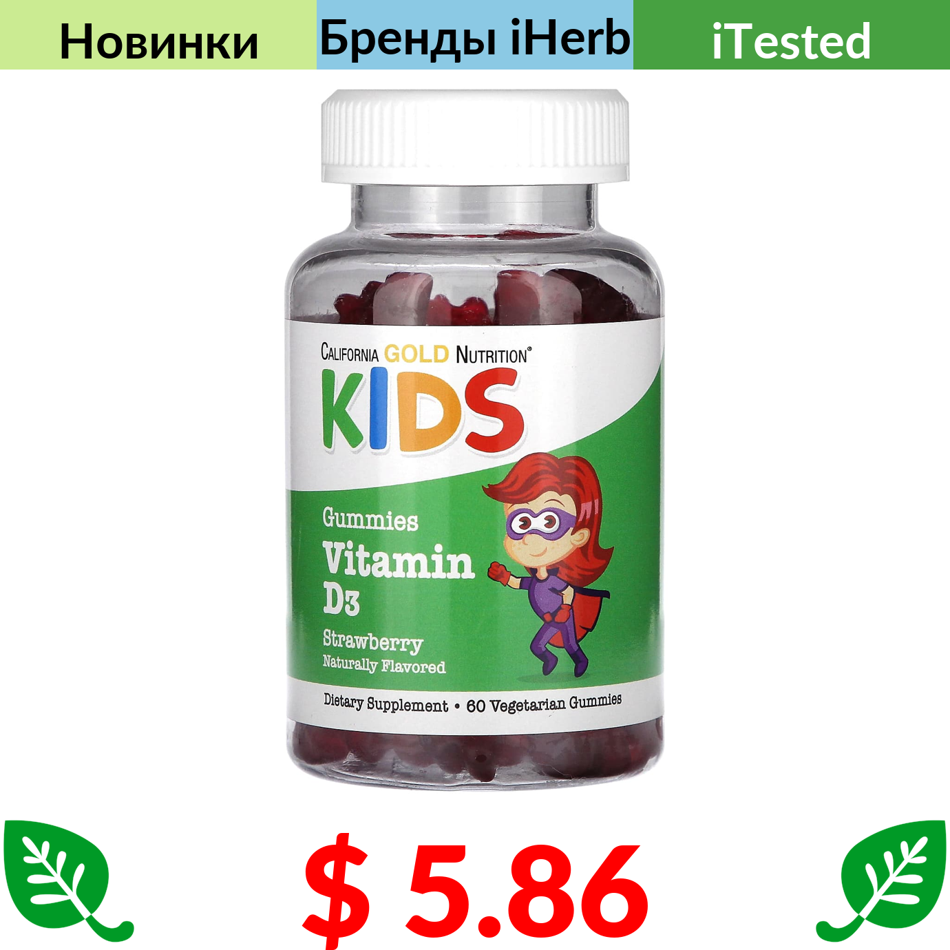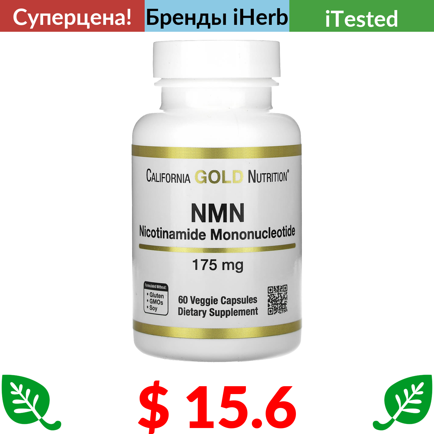 $ 15.6 California Gold Nutrition, NMN (никотинамид мононуклеотид), 175 мг, 60 растительных капсул