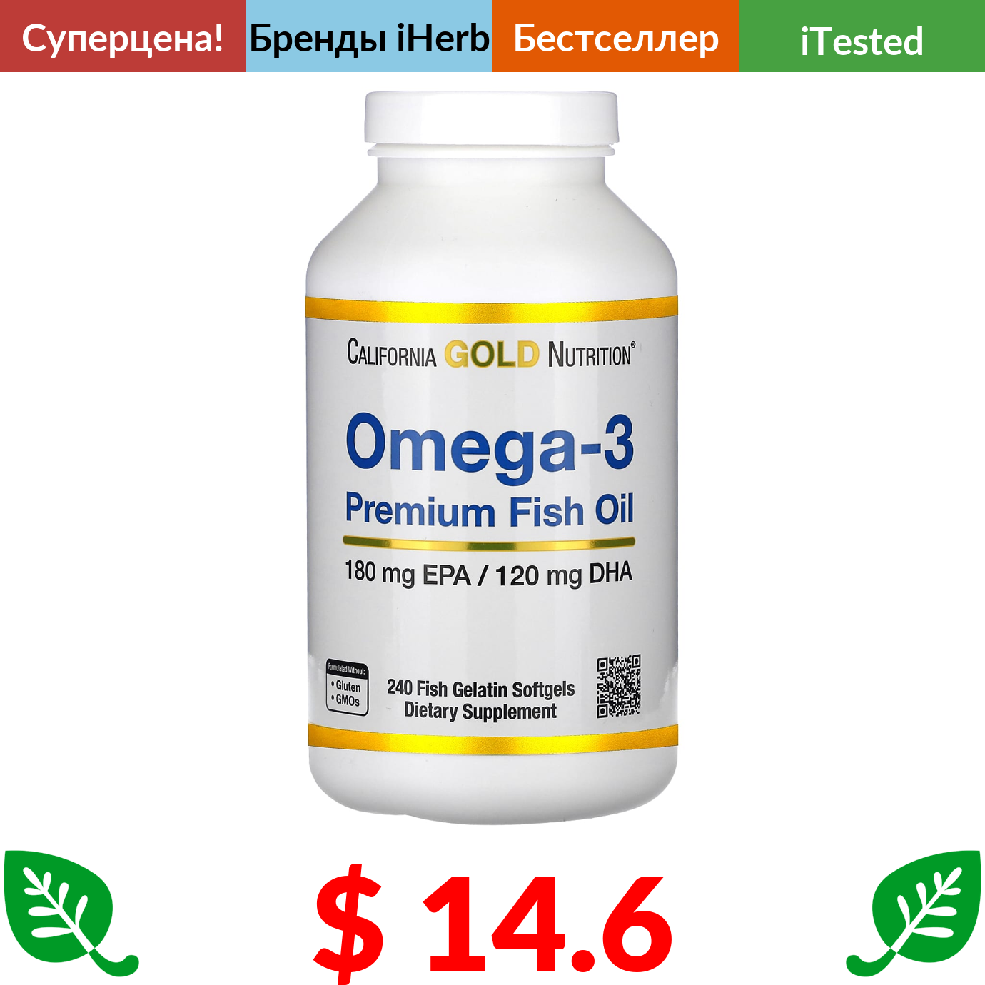 $ 20.44 Докторс Бэст, коэнзим Q10 с высокой степенью всасывания с BioPerine, 100 мг, 120 капсул