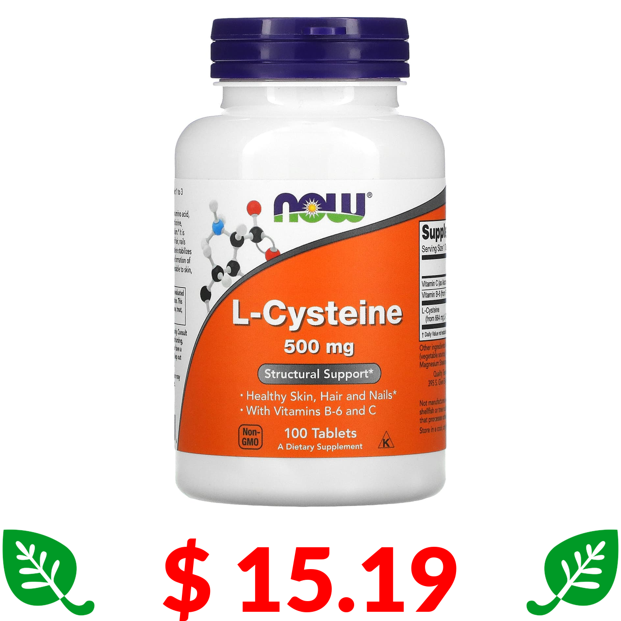 $ 15.19 Now Foods, L-цистеин, 500 мг, 100 таблеток
