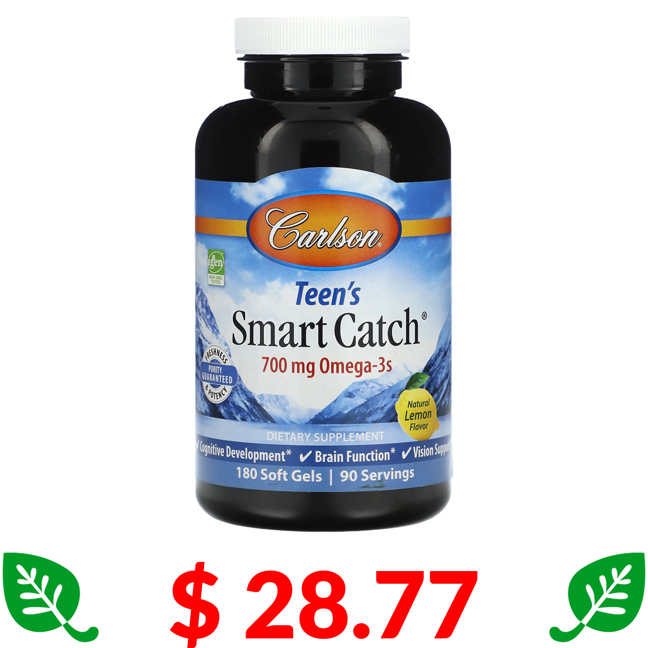 $ 28.77 Carlson, Teen's Smart Catch, натуральный лимон, 700 мг, 180 капсул (350 мг в 1 капсуле)