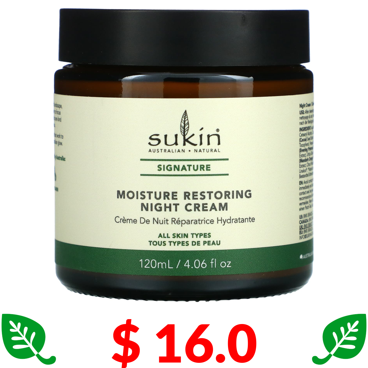 $ 16.0 Sukin, Восстанавливающий уровень влаги ночной крем, 4,06 ж. унц. (120 мл)