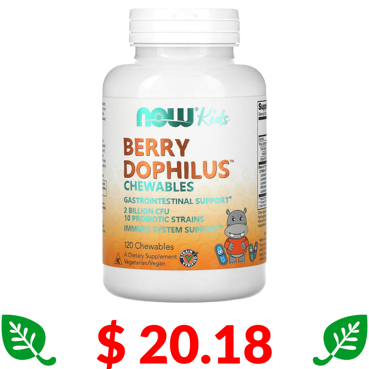 $ 20.18 Now Foods, Berry Dophilus, для детей, 2 миллиарда КОЕ, 120 жевательных таблеток