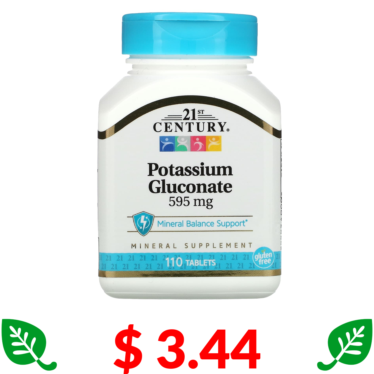 $ 3.44 21st Century, Глюконат калия, 595 мг, 110 таблеток