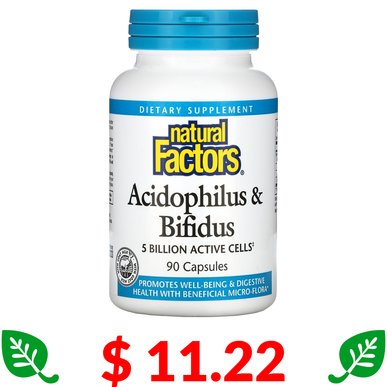 $ 11.22 Natural Factors, 5 млрд ацидофильных и бифидобактерий, 90 вегетарианских капсул