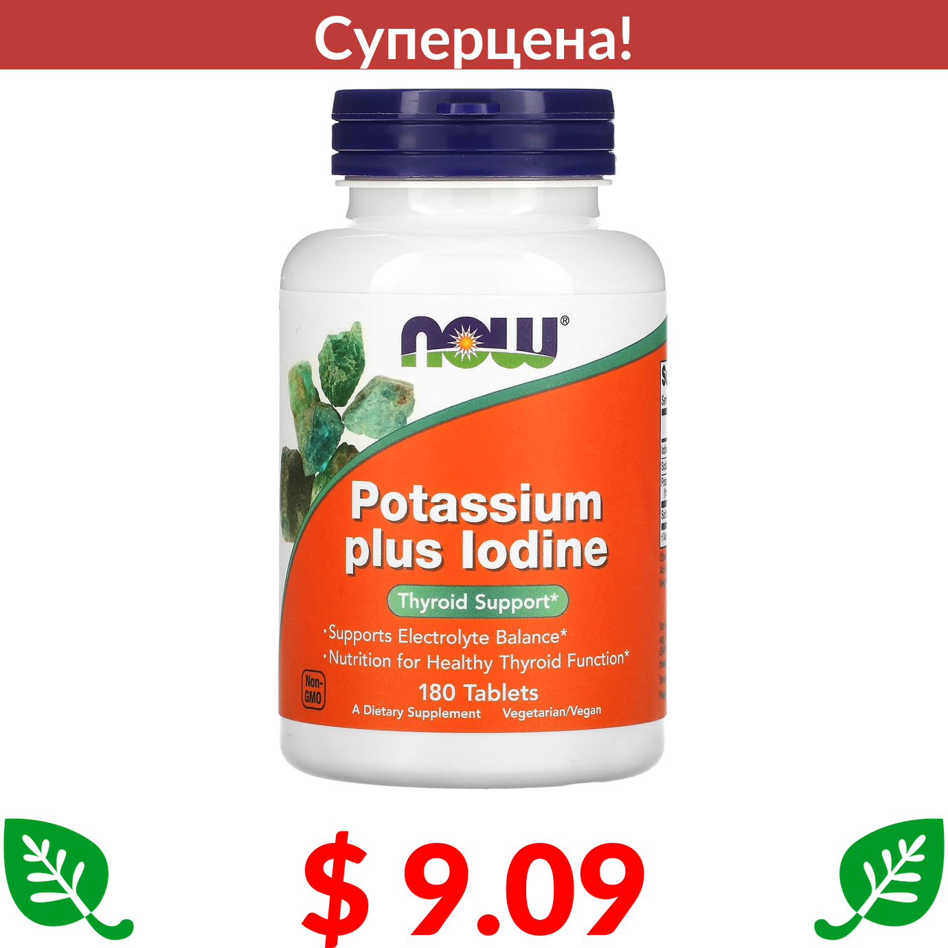 $ 9.09 Now Foods, Калий плюс йод, 180 таблеток