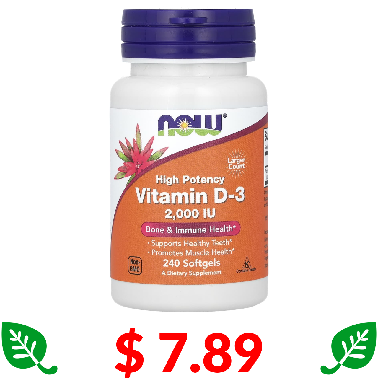 $ 7.89 Now Foods, витамин D3, высокоактивный, 2000 МЕ, 240 капсул