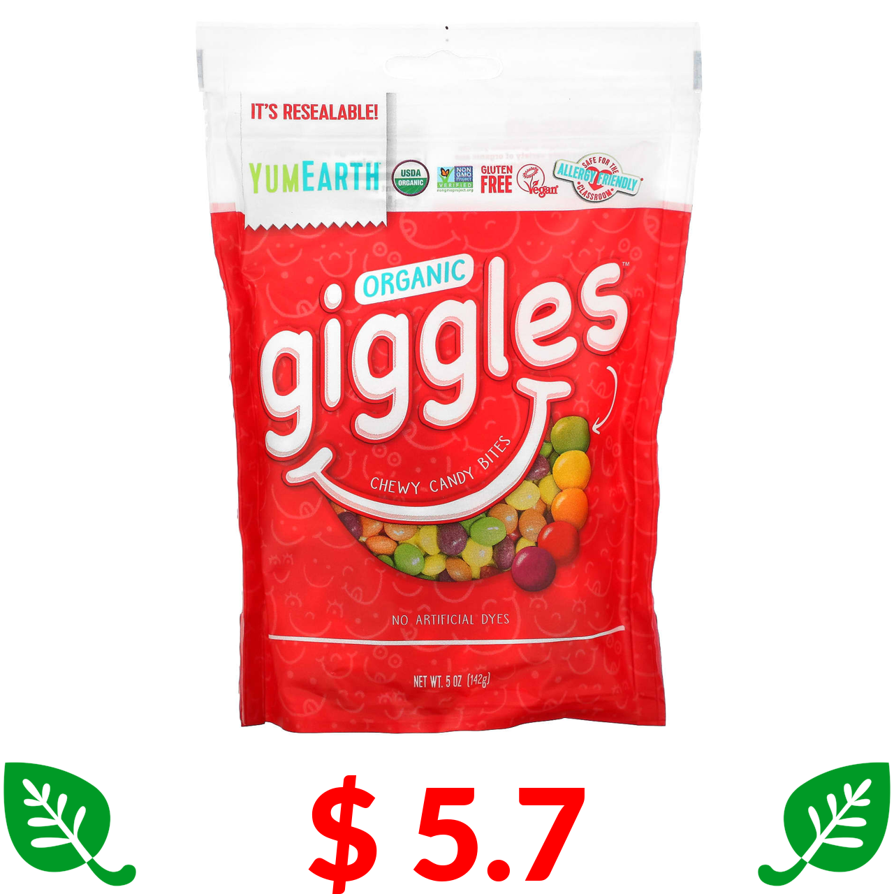 $ 5.7 YumEarth, Organic Giggles, органические конфеты, 142 г (5 унций)
