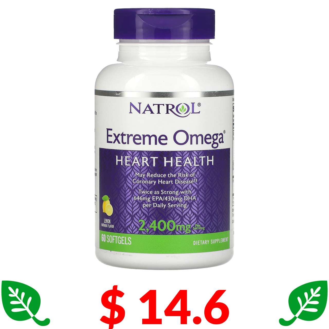 $ 14.6 Натрол, Extreme Omega, со вкусом лимона, 2400 мг, 60 капсул (1200 мг в 1 капсуле)