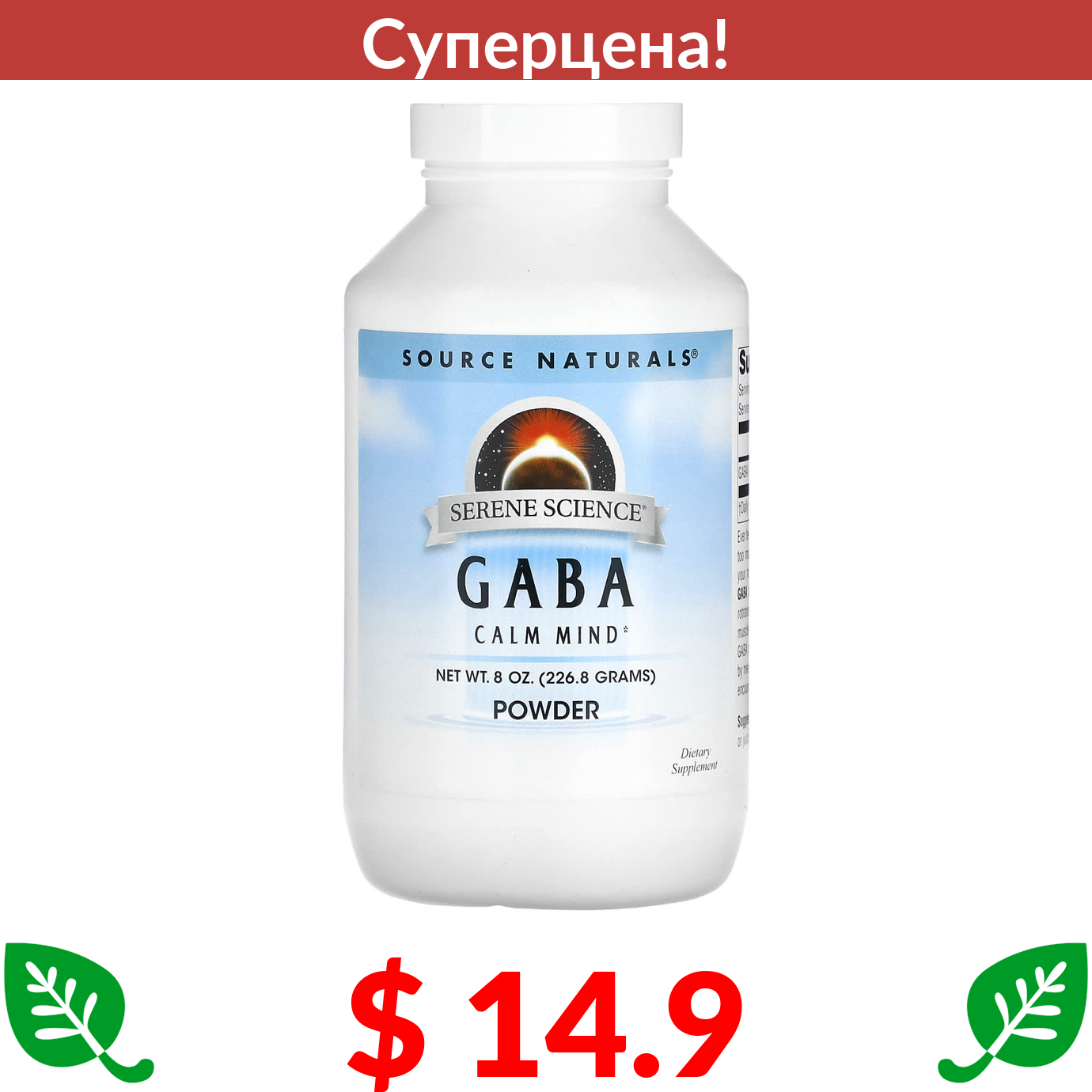 $ 14.9 Source Naturals, порошок GABA, 226,8 г (8 унций)