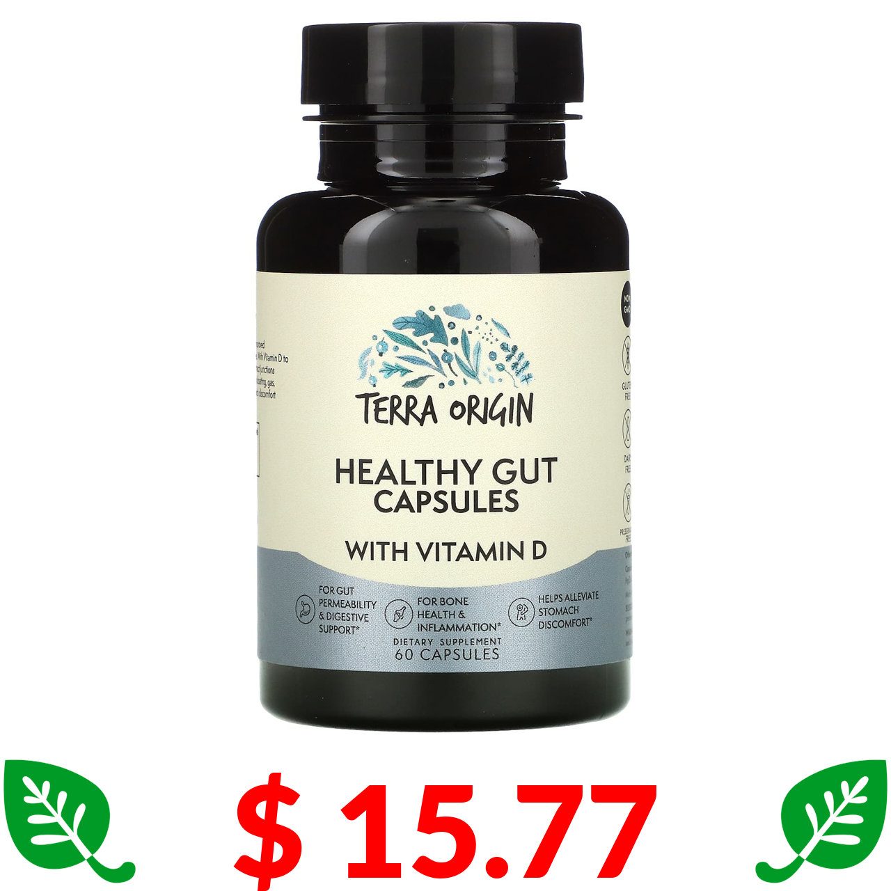 $ 15.77 Terra Origin, капсулы для здоровья кишечника с витамином D, 60 капсул