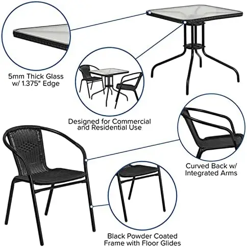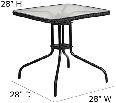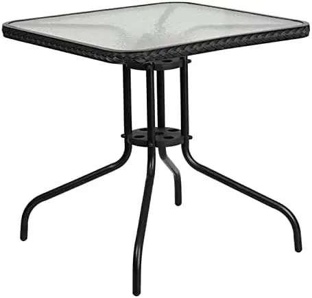 MmCIuieYpHere you can buy 28'' Square Glass Metal Table with Gray Rattan Edging and 4 Gray Rattan Stack Chairs Sillas de patio exterior Zero gravity chair with free delivery to your post office.