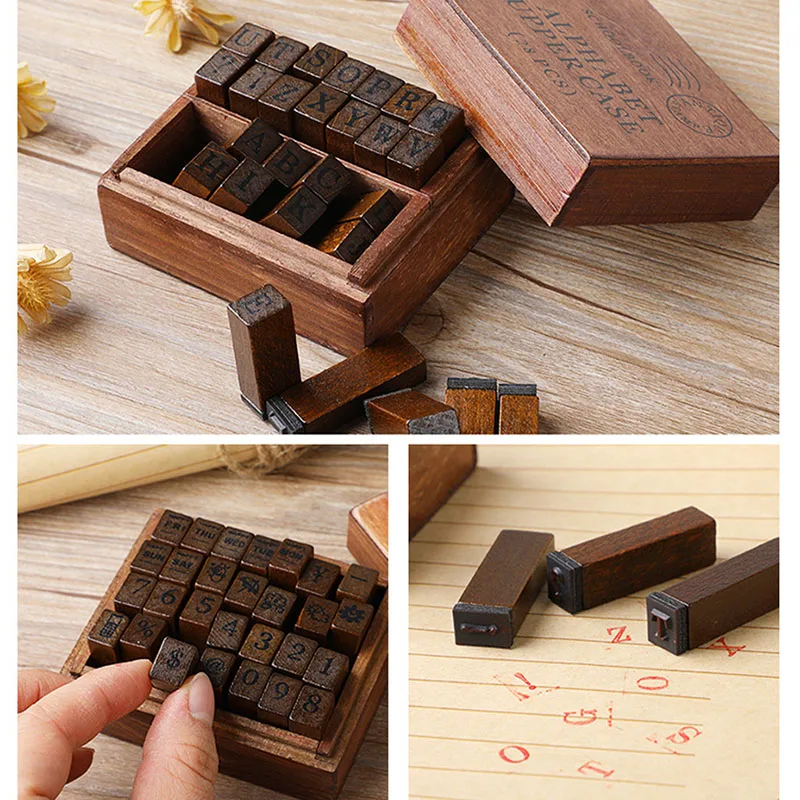 «28Pcs Alphabet Stamps Vintage Wooden Rubber Letter Stamp Set Ink Pad Stamp For Card Making Planner Scrapbook Diary Decorate» по лучшей цене на рынке! Всего за 9$ (855рублей)