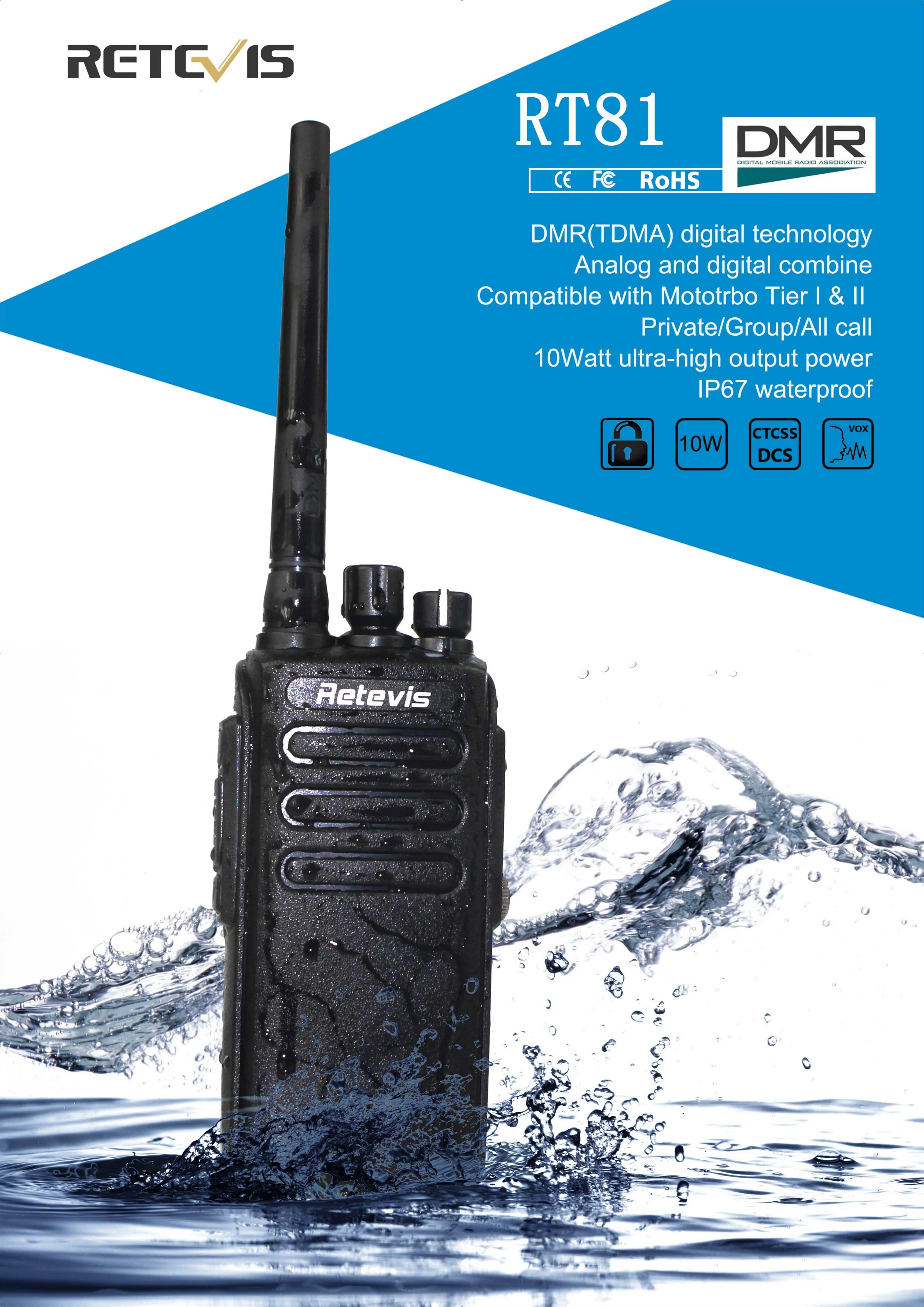 2PACK Retevis RT81 DMR IP67 Waterproof 10W Walkie Talkie UHF 32CH Encryption Digital/Analog FM Two Way Radio+Programming Cable - Купить с бесплатной доставкой