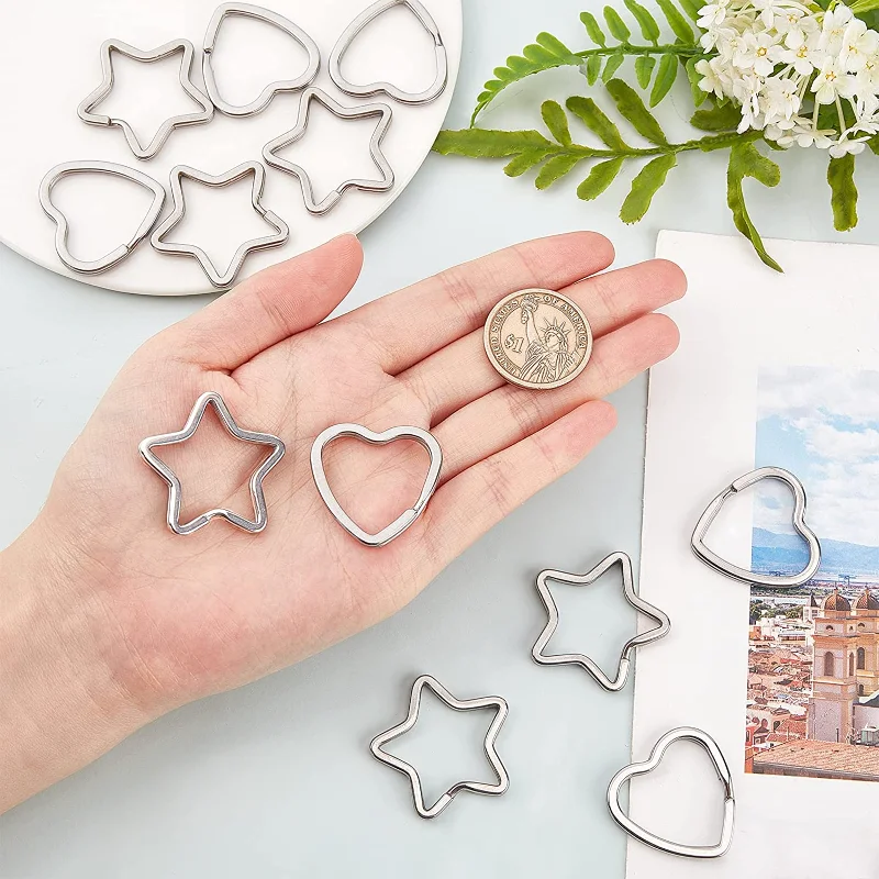 «2PC Star and Heart Split Key Rings Stainless Steel Keychain Ring Keychain Clasp Stainless Steel Color Metal Split Key Chain» по лучшей цене на рынке! Всего за 3$ (285рублей)