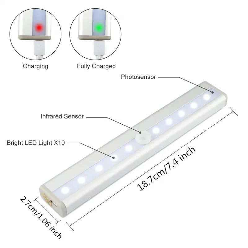 2PCS 10 LED Under Cabinet Light Motion Sensor Light USB Rechargeable Closet Light Stick-On Anywhere For Wardrobe Drawer Cupboard - Купить с бесплатной доставкой