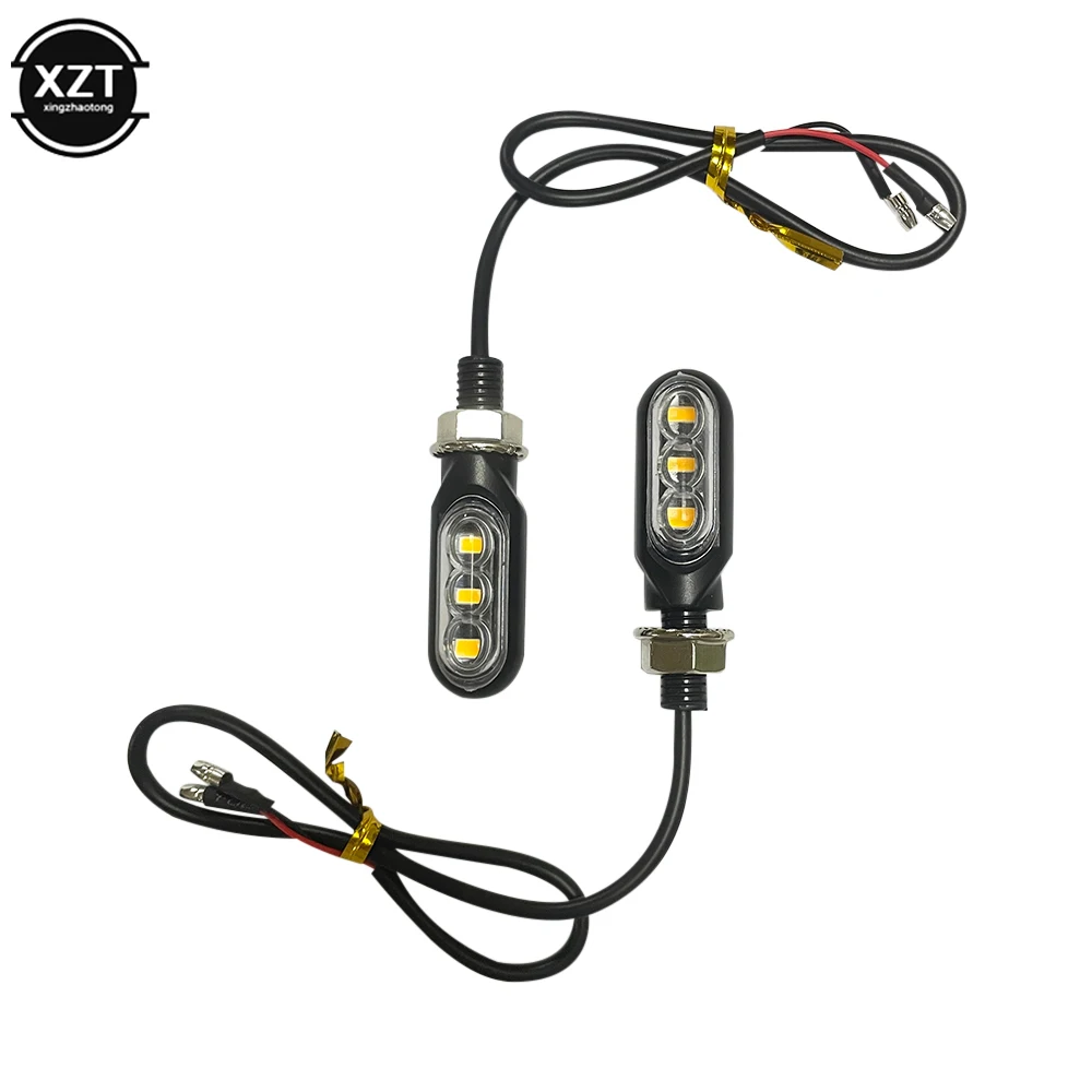 2PCS 12V Motorcycle Universal 3LED Turn Signals Short Turn Signal Lights Indicator Blinker Oval Flashers Amber Color Accessories - Купить с бесплатной доставкой